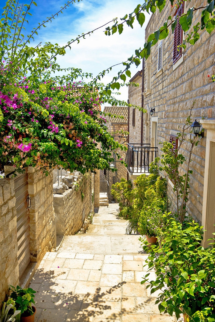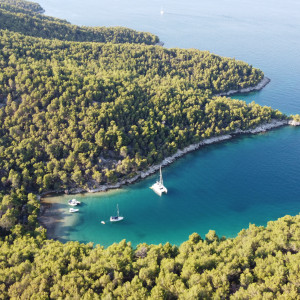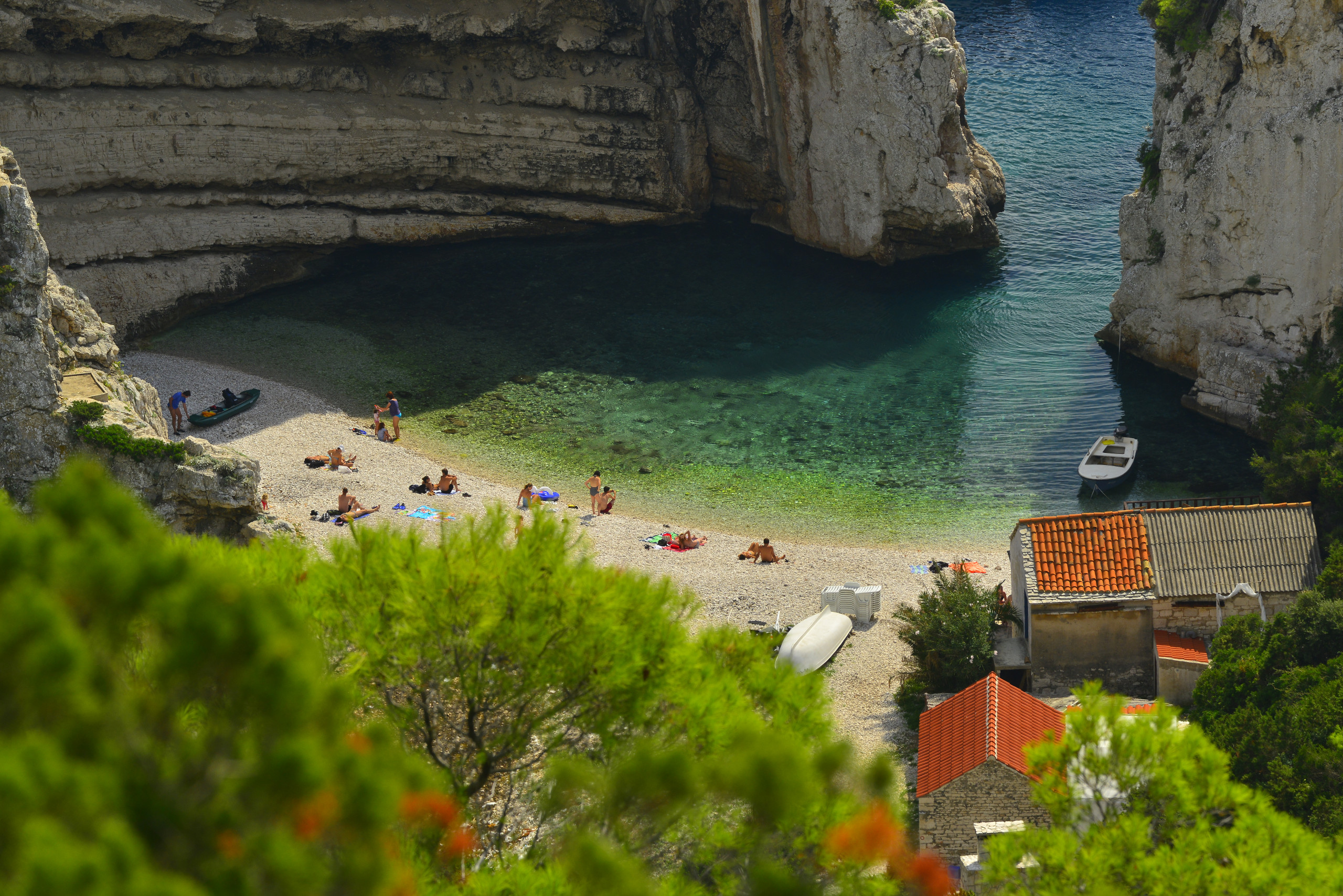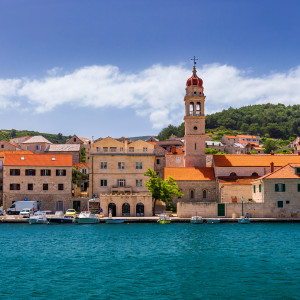 High cliffs surround the south side of the island with huge pine trees casting their shade on to the water. The island has been inhabited for centuries by people from Split. Vineyards and vegetable plantations cover most of the island surface as the locals still preserve their old way of life.